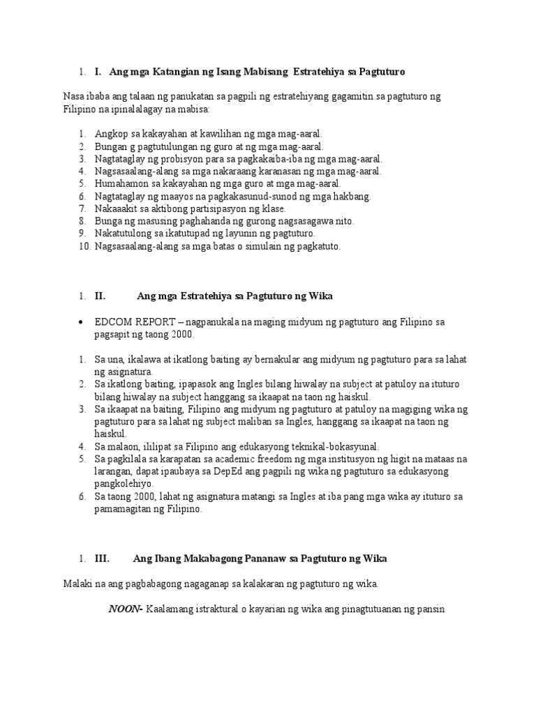Ang Mga Estratehiya Sa Pagtuturo Ng Wika At Ang Pamaraang Komunikatib Sa Pagtuturo Ng Docx Document