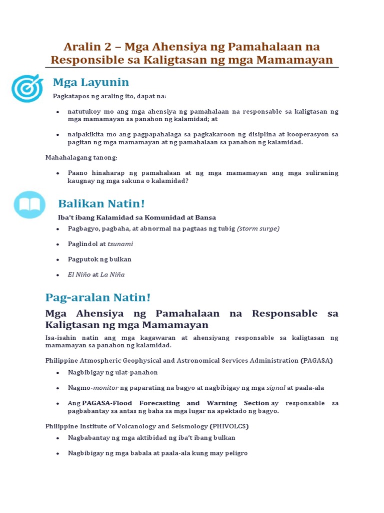 Aralin 2 Sa Harap Ng Kalamidad Mga Ahensiya Ng Pamahalaan Na Responsable Sa Kaligtasan Ng Mga Mamamayan