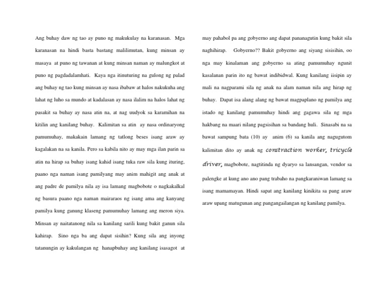 At ng inilibing na si lolo noong ika dalawang pot isa ng desyembre 2014. 10032018 Tula Karanasan sa Buhay Kung ano ang buhay na ginagalawan. Talagang umangat ang tao dahil sa sariling pagsisikapB.