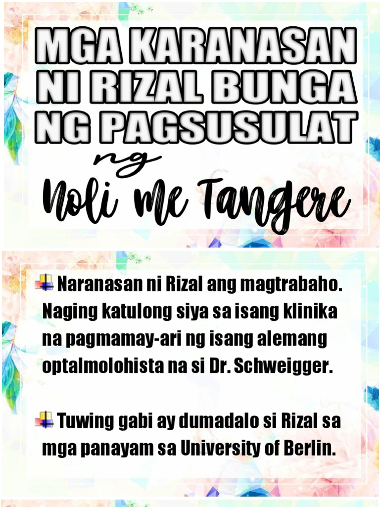 Karanasan Ni Rizal Dulot Ng Noli Me Tangere 1